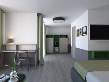 само поселение-ужасно! в абсолютно пустой отель нас поселили на самый верхний этаж с окнами во двор! на все мои просьбы дать номер ниже-отказ! как сказала девушка на рецепшен-«если бы вы не через букинг селились, то мы бы что-то для вас сделали, а так мы ничего менять не будем»! и это в отеле без лифта- все сумки, чемоданы мы тащили по неудобной лестнице, потом я по состоянию здоровья просила номер ниже-нет и не обсуждается! зато всех подростков на следующий день селили на 1 и 2 этажах!