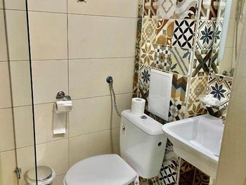 Персонал не очень приятный. В ванной комнате нет горячей воды.