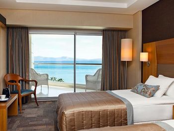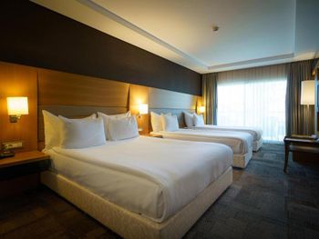 Нас обманули. При размещении с нас взяли оплату за номер, который мы забронировали 4 месяца назад. При этом нам ничего не сказали, что номер будет НЕСКОЛЬКО ДРУГОЙ, включая тот факт, что и другой ценовой категории. В номер нас никто не сопровождал, как это принято в отелях «ТАКОГО УРОВНЯ». Сюрпризом стал номер с видом на парковку, вместо улучшенного номера с видом на море. Мы сразу вернулись на ресепшн, решив, что это просто ошибка персонала. И вот тут начался целый заранее отрепетируемый спектакль. Схема следующая - зовут очень злого старшего менеджера (в нашем случае Secil Sancak), которая без извинений сообщает, что именно в нашем одном номере нет электричества, и мы просто обязаны смириться. Если не согласны, то отель может аннулировать оплату и мы можем идти в дверь (буквально дословно). Вот здесь на этом моменте мы обращаемся к Booking.com - это просто беспредел в отношении к туристам! Бронировали отель ОЧЕНЬ ЗАРАНЕЕ. День заезда пришёлся на пятницу - местных жителей было очень много, скорее всего овербукинг. Нас отнесли к клиентам, которыми можно пренебречь. Деньги взяли за другой улучшенный номер, поселили в номере 2201 с балконом на парковку - шум машин и крики людей. Просим Booking.com разобраться с этой неприятной ситуацией. Так не должно быть в практике отеля, который позиционирует себя как 5 звёзд. Это обман и развод туристов.