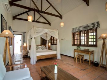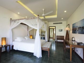 Тихий и уютный отель, вся территория грамотно продумана, есть просторные собственные дворики у коттеджей, на террасах множество тропических растений и мест для отдыха в тени, пляжная зона уютная, пожалуй лучшая на этом побережье, изобилие и разнообразие блюд на завтраках, которые проходят в комфортном ресторане (удивили квашеная капуста и маринованные огурцы :) ) кофе есть не только вьетнамский,