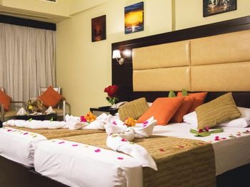На завтраке, очередь за омлетом и блинчиками ждали 40минут, при заселении просили денег за якобы побольше номер, хотя я такой и оплатил, на ужин попались несвежие салаты, мы с женой отравились, экономия в отеле во всем даже напиток юпи,в баре одна вода была, отель подуставший.