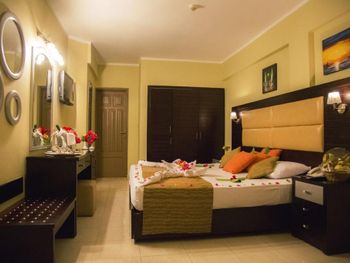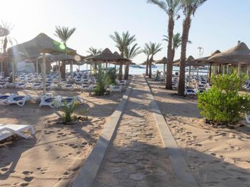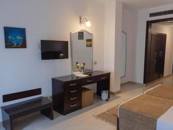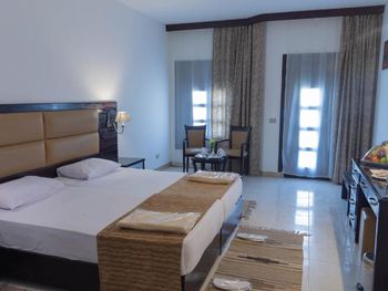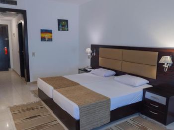 Персонал грубияны, плохо говорят по английски, нет никакого дела до гостей (могут по 10 минут при тебе говорить на арабском друг с другом, делая вид что тебя здесь нет). Заселяют долго, при выселении браслет долой и вон с пляжа, хотя вначале говорили что это не будет проблемой. При мне несколько человек заселились и все жаловались что комната не соответствует бронированию. За окном дискотека, шум до 1 ночи. В туалете грязная сантехника, неприятно пользоваться. Завтрак безобразный, остался голодным, в кафе грязно. В жизни сюда не вернусь, и жалко тех кто забронировал этот отель на весь срок отпуска. Цена сильно завышена, те кто приезжает по путёвке платят за него в 2 раза меньше.
