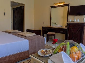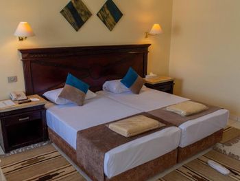 Хоть и шведский стол и выбор большой, но еда на 4-, и уборка номер не всегда проходит хорошо( и если ты не Египтянен, то смотреть тебе не на бассейн, а балкон будет выходить на каменный забор.