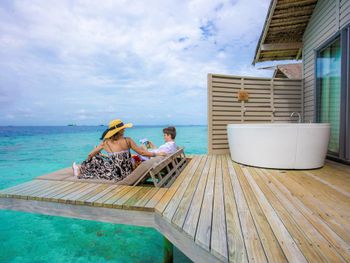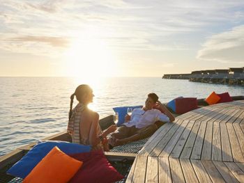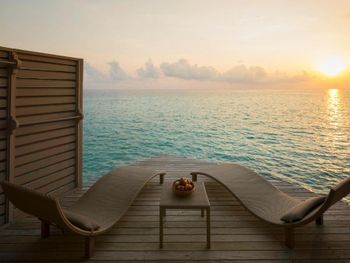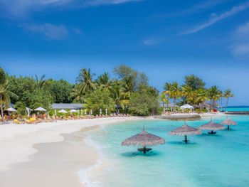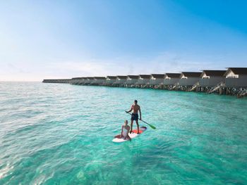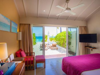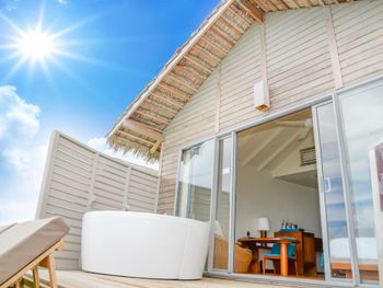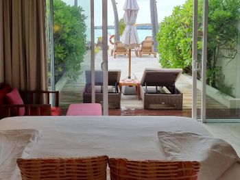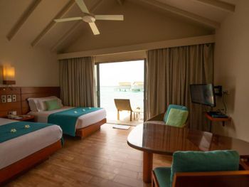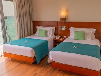 Это была наша первая поездка на Мальдивы. Я знал, что не сезон, это был август, но решил рискнуть. Результат: сильные бури ночью, домики на воде качает, ветер воет, реально страшновато. Но по правде сказать, напрягало это одного меня)) я спрашивал у наших соседей- у них всё супер, нам с женой было не комфортно по ночам. Но это же не вина гостиницы, не повезло с погодой. Днём погода была отличная, грозы только ночью, хотя дожди тёплые. Поэтому, если едете в несезон, то рекомендую бунгало на берегу. Мы 4 ночи провели на воде, а потом 3 на острове. Совсем разные ощущения, ночью тихо и ничего не качает на суше. На воде конечно дороже и комфортнее, но только если нет грозы. В целом отдыхом очень довольны. Гостиницу однозначно рекомендую, только обращайте внимание на погоду