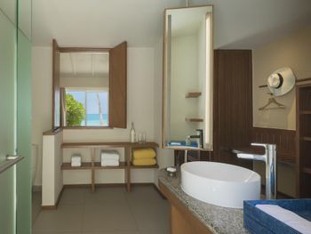 3. номер на пляже - крошечный, в изголовье кровати есть «окно» в туалет- получается что уши в полутора метрах от унитаза; нет навеса над террасой, зонт крошечный и немобильный - постоянно в тени может быть только один лежак; номера и террасы стоят вплотную, слышно разговоры соседей, а если это товарищи из второго пункта, то их слышно через две-три террасы