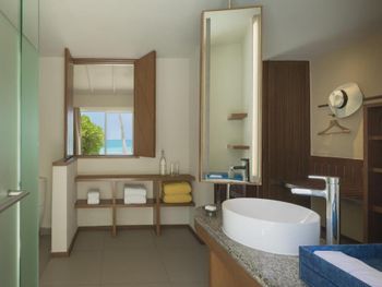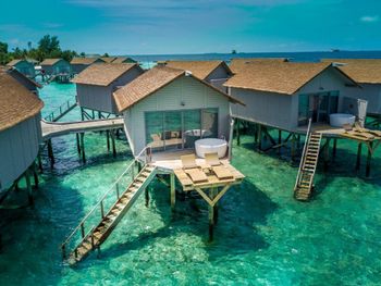Очень понравилось расположение гостиницы. Да, видны стройки, больше со стороны главной бухты и ресепшена, на косе , где больше вилл на воде, тоже есть стройка, но она далеко и не досаждает. Не вижу никакой катастрофы, как тут люди пишут в отзывах. Персонал приятный и ответственный, еда разнообразная. У нас был пакет "всё включено", ни разу не пожалел. Коктейлей не много, но они вкусные. Можно заказывать обед и ужин ещё в трёх разных ресторанах, это входит в пакет. Еда и напитки отдельно обошлись бы гораздо дороже. Коктейли по 9-12 долларов, например. Виллы на воде чистые и просторные, брал с джакузи на рассвет, там вид лучше всего. Заката все равно не видно было из-за туч. Wi Fi по всему острову, со связью проблем нет. По вечерам караоке, кино, дискотека