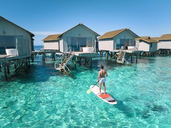 Домики (которые на воде) стоят на деревянных сваях. Постоянно домик шатало. Иногда так шатало, что просыпались по среди ночи.