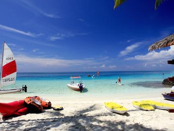 Неожиданно было еще и увидеть риф курорта 🪸, побывавши на многих Мальдивских курортах, могу сказать, что прям под ногами, спустившись в воду такого большого количества рыб я не ожидала увидеть! Радует то что дают бесплатно сеты для сноркелинга и бесплатно можно прокатится на кайяке.