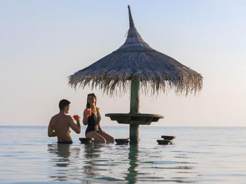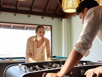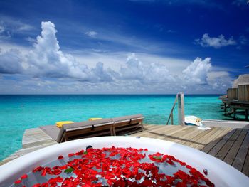 Очень хорошая уборка номеров 2 раза в день (особая благодарность Shohel). Хороший риф недалеко от домиков на воде. Неплохие блюда в ресторанах a la carte (итальянский и тайский).