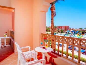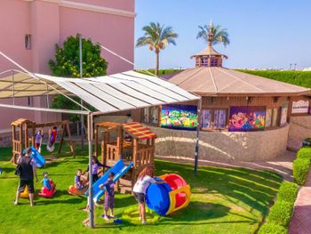 Сама гостиница вполне хорошая. Территория не очень большая, но и не маленькая. Везде чисто. Номера (наш Семейный люкс) чистый и просторный. Балкон выходит на фонтан. Кондиционер работает исправно. Аквапарк вполне интересен, но спустя пару суток надоедает. Бесплатные напитки дают без проблем, но алкоголь местный мы не пили. Не хотелось давиться местным виски. Лучше берите виски с собой. Ну, или водку. На баре работают ребята хорошо. Махмут и Абдала делали свою работу отлично. Просто надо немного поощрать. ) Из развлечений для взрослых только бильярад. Вечер - моё любимое время и мы там его проводили за кольяном. Есть и тенистный столик. Он один и всегда занят. Людей было не очень много и всегда были места с лежаками. Кстати, мы хотели пойти в отель Charmilдion Gardens Aqua Park, но нам сказали, что нельзя. Странно. В других отелях всегда есть отели партнёры и вход свободен. Можно ехать только на море на шатле.