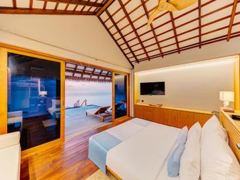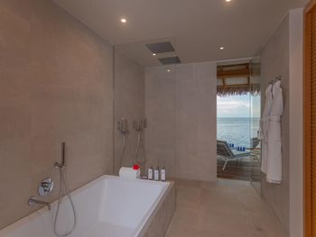 Остров симпатичный, но прям крошка, если бы не часть, которая вынесена в море, гулять вообще было бы негде. Красивые фото есть где сделать, получающаяся картинка соответствует представлению о райских Мальдивах. Приятный песок, есть небольшие участки где он как мука, немаленькое разнообразие рыб, прямо к водной вилле их приплывало много, на других 2 резортах этого же атолла такого и близко не было. Покупаться в спокойной воде тоже есть места. Питание неплохое, но и не самое лучшее, вино в баре у бассейна понравилось, в ресторане за ту же цену наливали не очень. Настольный теннис выручал в дождь, жаль, что один стол, т.к. периодически был занят. Водные развлечения есть, цены умеренные, погода не всегда была, чтобы ими воспользоваться. Очень много чего можно и нужно улучшить. Общее впечатление складывается из мелочей, плохих было много, поэтому и такая оценка. Началось ещё со встречи в аэропорту: ожидали посадки на катер несколько часов с чемоданами на выходе из аэропорта, представитель отеля не мог обозначить примерное время отправления, на все вопросы уклонялся от ответа. Проживали 3 дня в вилле на воде, досталась самая крайняя, 340, практически на берегу, с неудачным видом на камни, не стали просить поменять, хотя надо было. После долгой дороги не было сил это сделать. Интерьер конечно как и на фото симпатичный, но подуставший, требует ремонта, т.к. игнорируются и своевременно не устраняются появляющиеся в результате эксплуатации недостатки. Фото прилагаются.