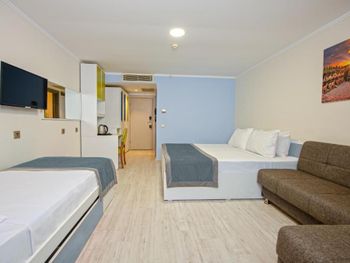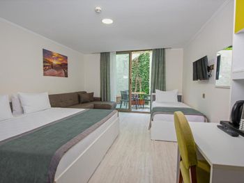 Отличное месторасположение отеля, в 2 минутах ходьбы набережная и море - в отеле можно взять пляжные полотенца, и потом их вернуть на ресепшен. Сотрудники отеля всегда были готовы прийти на помощь, вне зависимости от нашей проблемы. Рядом также расположены много заведений, где бы Вы могли покушать. Мы останавливались в Suite - и были удивлены пространством в номере, это является большим плюсом.