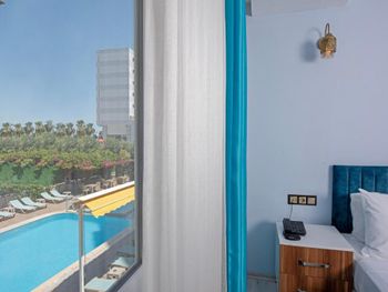 Очень хорошее расположение отеля на первой линии, на набережной Коньялты. Много кафе, магазинов. Не только замена полотенец, но и уборка в номере каждый день, персонал вежливый и приветливый, очень вкусные завтраки и кофе с молоком. Не могу понять откуда плохие отзывы, сервис и чистота не хуже чем в пятизвездном отеле. Буду в Анталии, непременно выберу этот отель! Далее отзыв от моей дочки. На ресепшене очень хорошая девушка турчанка, очень добрая и приветливая. Сегодня дала мне ручку. Рядом с отелем есть кафе, точно название не помню, но последнее слово dünyası, çök lezzetli vaffle ve yemek. Нам очень понравилось, teşekkür ederim❤️