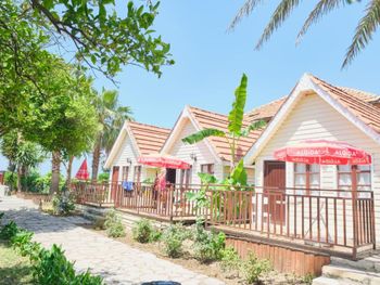 Расположение отеля идеальное - непосредственно на берегу моря, от бунгало реально 100 метров до пляжа. Сам пляж песчаный и пологий вход в море. Прекрасно для детей любого возраста. Огромный просто огромный плюс - собственный пляж, всегда найдете лежак с зонтиком. Очень отзывчивый и внимательный персонал. территория отеля уютная, домики в апельсиновом саду, столики и диванчики в тени деревьев. Вообще локация просто шикарная - 10-15 минут пешком по берегу до центра старого Сиде, где музеи, архитектурные древности, кафе и бары, магазинчики и вообще "движуха"). Большинство людей приезжают туда на такси, пешая доступность большое преимущество. В самом отеле очень тихо и спокойно.