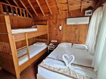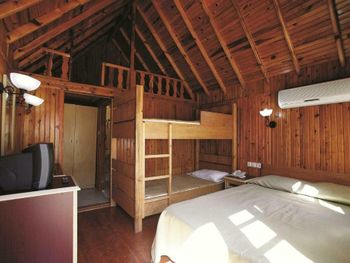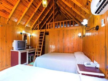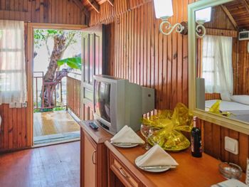Интересна концепция отеля. Понравились бунгало - дерево, экологично, легко. Небольшой двухуровневый деревянный домик (кондиционер отдельный), а не стандартный каменный корпус. Санузел небольшой (душ).