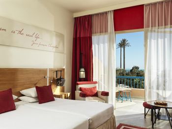 Все номера отеля Club Paradisio выходят на балкон с видом на бассейн, море и пышные сады. Среди удобств — телевизор с плоским экраном, мини-бар и телефон. В люксах обустроены отдельная гостиная и обеденная зоны.