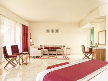 Прекрасные номера, у нас был семейный полулюкс, номер 145, с видом на море. В бронировании на букинге нет выбора вида, но при заселении Мохаммед (вроде бы так) предложил нам прекрасный номер с хорошим видом. Лучше брать первый этаж, на втором этаже такого типа номеров нет верхней крыши, наверное, солнечно слишком, не укрыться.