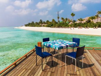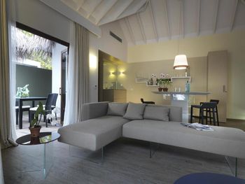 Великолепный, новый и современный отель на Мальдивах, работающий по системе "все включено". Очень гостеприимный персонал, говорящий в т.ч. на русском языке. Шикарные виды отовсюду. Очень уютные виллы. Превосходная и разнообразная еда. Самый разный алкоголь (причем весьма качественный) льется рекой. В общем, трудно представить лучшее место для отдыха, правда, ценник не низкий.