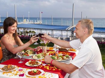 Гостям подают завтрак «шведский стол», континентальный завтрак или полный английский/ирландский завтрак. При Concordia Celes Beach Hotel работает ресторан, где подают блюда китайской кухни, блюда средиземноморской кухни и пиццу. По запросу для гостей приготовят вегетарианские, безлактозные и халяльные блюда.