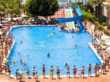 Кто первый раз собирается в этот отель, будьте готовы, это семейный отель.Много детей разного возраста и "взрослое" поколение.Персонал супер, отличные девочки аниматоры. Отель огромный и красивый. Море в двух шагах.