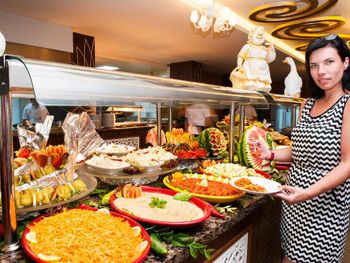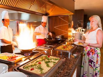 Портят этот отель быдло люди, голодные бешеные бабульки которые просто окупитуют ресторан и не подпускают никого пока не набьют свои сумки фруктами, и десертами,очереди за рыбой, можно было бы поставить 2 повара чтоб не было такого столпотворения. Очень скудный завтрак, отдыхали 15 дней, кроме сыра, яиц и блинчиков кушать нечего особо, потом отъедались на обед и ужин. Но за такие деньги контингент соответствующий, еще раз повторю, сам отель классный