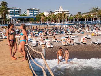 Слишком грустный опыт. Последний день был полностью испорчен по вине некомпетентности персонала и выраженной надменности со стороны мужского пола по отношению в девушкам , в особенности, которые отдыхают одни. НИКОГДА НЕ ПРИЕЗЖАЙТЕ СЮДА ОДНИ. Я отдыхала с родителями, но так как мы живем в разных странах, они улетели на два дня раньше. В последний день пребывания я оставила свои вещи на лежаке и отлучилась на обед. По возвращению мои вещи были передвинуты некультурными туристками и я попросила их освободить ранее занятое мною место. Получив грубый отказ, я поставила свой лежак близко к этим дамам (к слову они были турчанками) и молча продолжила наслаждаться отдыхом. В какой-то момент подбежал официант с криками «get up». Как оказалось, дамы пожаловались на меня, что я слишком близко к их (моему) месту, откуда они меня нагло передвинули. Далее скандал накалился и другой сотрудник НАСИЛЬНО стал передвигать меня без моего согласия. После чего последние часы своего отдыха я провела общаясь с директором по данному насильственному обращению со стороны персонала (мужчин), которые даже не соизволили разобраться в ситуации. Так же я сняла видео, где данный персонал хамил, оскорблял меня. Конечно, директор, посмотрев это видео вызвал мужчины на «ковер», тот поникше извинялся, но что толку ? Отдых испорчен, много нервов потрачено, на следующий день мне было очень плохо из-за давления. Такой отдых вы хотите ? Тогда приезжайте в этот отель. Некультурный, абсолютно не соблюдающий субординации персонал. Это я еще молчу, что весь отдых меня откровенно преследовал фотограф, пытающийся задавать меня на съемку. Стоял надо мною пока я отдыхала на пляже и даже на просьбы оставить меня в покое - не реагировал.