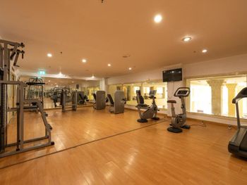 Гости могут позаниматься в тренажерном зале с современным оборудованием. Для юных гостей также обустроена детская игровая площадка.