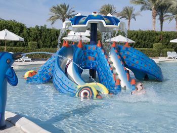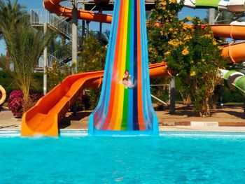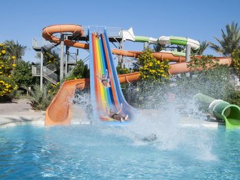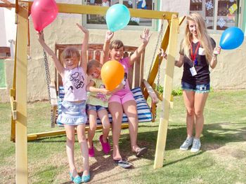 Свой аквапарк на территории, простенький конечно, но кататься можно даже взрослым.