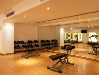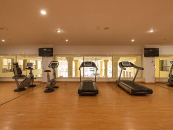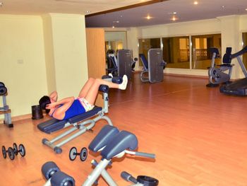 Гости могут позаниматься в тренажерном зале с современным оборудованием. Для юных гостей также обустроена детская игровая площадка.