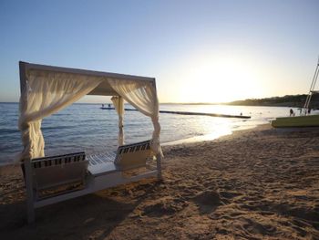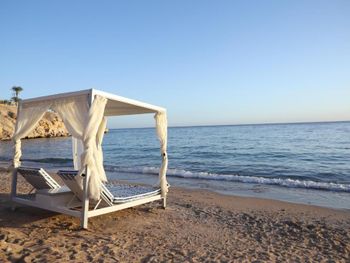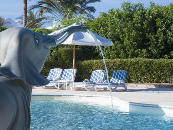 Пляж разваливается (сломанные шезлонги, зонтики тоже сломанные, поддон в море тоже разваливается).