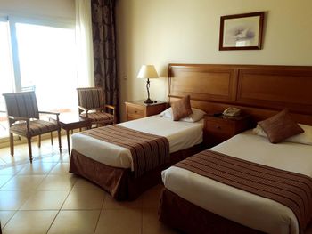 Светлые номера курортного отеля Continental Plaza Beach имеют большие окна, выходящие на террасу или балкон. В числе удобств — телевизор со спутниковыми каналами, электрический чайник и отделанная мрамором ванная комната.