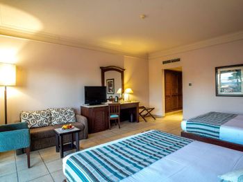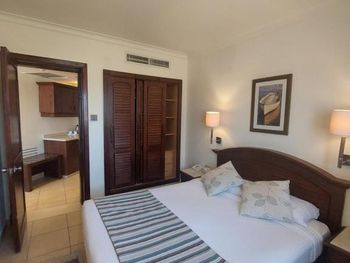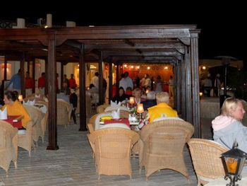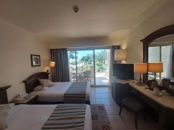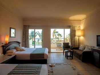 Просторный номер с отдельным входом, с салоном, террасой и видом на море или, скорее, на пляж, так как пляж очень большой и широкий. Номер убирали каждый день и убирали хорошо. Персонал приветливый, все проблемы, такие, как неработающий сейф, телевизор, перегоревшие лампочки, решали очень быстро. Территория отеля очень большая, пляж огромный и чистый. Можно плавать в лагунах без волн, но и без рыб. Есть небольшой пирс, по которому можно спуститься в море к кораллам, огороженным буйками. Кораллы в этой части мертвые и неинтересные, рыб мало. За буйками есть большой красивый риф, мы к нему плавали, несмотря на запрет и непрерывные свистки смотрителя, так как этот отель мы выбрали исключительно из-за рифа. В первые дни был сильный ветер и большие волны, так что поплавать вволю при всем желании не получилось бы. Добирали впечатления морскими экскурсиями со снорклингом в разных красивых местах. В последний день ветер стих, мы попросили смотрителя не свистеть, заверив его в том, что мы хорошие пловцы, и с нами ничего не случится. С пирса мы плавали с сестрой всегда одни, ни с кем больше не пересекались. Так вот, нужно проплыть над рифом до того места, где он обрывается в море, и плыть вдоль этой стены. Там много живых кораллов и разных рыб. Напротив есть еще один риф, он недалеко, его видно и с пирса и под водой, до него всего метров 20, не больше. и этот риф действительно красивый, а рыб там просто уйма!!! Таких огромных стай желтых луцианов я не видела больше нигде! Большие стаи хирургов, крупных носорогов, ворчунов и всех других рыб в большом количестве, а также скатов. И тянется этот риф очень далеко. В ресторане очередей не было, но и народу в отеле было крайне мало, в подавляющем больштнстве - русскоговорящие туристы, но очень спокойные и воспитанные. ))) Еда не слишком разнообразная, как в других отелях, но вполне съедобная. Вечером один раз была живая музыка, певец выступал, один раз было огненное шоу.
