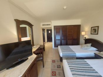 Телевизоры пора списать. Плохая работа персонала на пляже, некоторые работники на баре( помощник бармена) грубят , неприветливы , вина ужасны-разбавлены водой (хотя я любитель египетских вин), еда недостаточно вкусная.