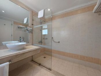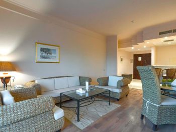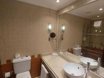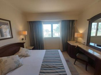 Отель на среднюю тройку. Очень сильно уставшие номера, вроде чисто, но создается ощущение, что все старое и ветхое. Территория отеля большая, создается ощущение, что ты один в отеле, никого нигде не видно. Около Ресепшен вроде красиво и чисто, но стоит отойти чуть подальше к номерам - валяются пустые пластиковые бутылки, куски какого-то пластика, рваные пакеты и т.д. Еда в ресторане очень посредственная, ребенка сложно было накормить чем-то, хотя он не из привередливых. Сказал: "с голода не умрем, но похудеем сильно". Кругом летают мухи... вообщем ощущения неприятные. Как оказалось, в этом отеле есть два ресторана ala card, которые можно посетить по предварительной записи бесплатно, но, к сожалению, нигде не было об этом никакой информации не было, и узнала о ресторанах за 3 часа до отъезда. Телевизор в номере не работал, телефон в номере тоже. По всем вопросам приходилось ходить на ресепшн. К уборке претензий нет. В номерах нет мыльных принадлежностей, нужно брать свои. В описании написано, что есть подогреваемые бассейны, в ноябре их не было, все бассейны очень холодные. Бар с Фаст-фудом на пляже начинает работу в 13, тогда же, когда и начинается обед. Завтрак заканчивается в 10. Можно было бы открывать бар и раньше, в 11, так как дети, завтракая утром, до часа дня не выдерживают (активно плескаясь в море), что-то нужно перекусить. Весь пляж находиться на открытом пространстве, поэтому очень сильный ветер.