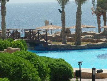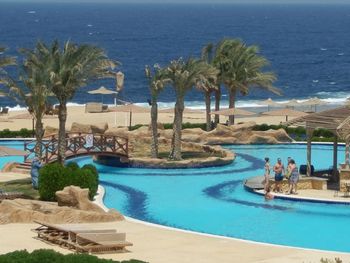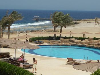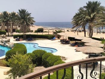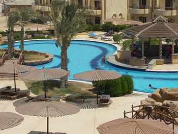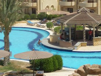 Бассейн был чистый. Территория ухоженная, много деревьев и кустов. Пляж тоже чистый