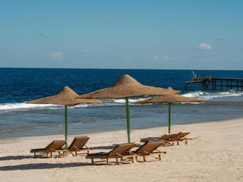 Нет песчаного пляжа. Грусть. Над меню в ресторане надо поработать. И не делать из одного теста 15 тортов и украшать их по-разному. Ориентацию делать на Европейскую кухню. Нет сливочного масла😩.