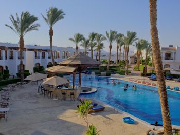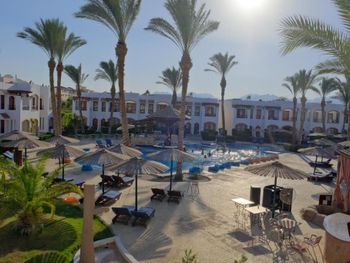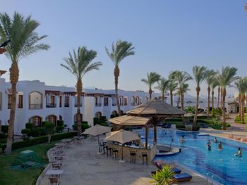 На территории два бассейна. Номера чистые,хоть и старая мебель.Бар на бассейне не работает,только на ресепшине.