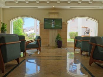 . В отеле нет резервного освещения на случай ЧП. И персонал похоже не готов к действиям при стихийных бедствиях. Сидеть в абсолютной темноте в комнате, когда за окном бушует шторм, о стекла стучит град, а с потолка льёт вода и ты не знаешь когда это закончится, а связи с ресепшен нет (телефон в номере не работал) страшновато. Хорошо, что у меня были с собой свечи и спички. Полы в коридорах были залиты водой от ливня, ресепшен тоже был затоплен. При этом отель аесь был в темноте за исключением зоны ресторана и ресепшен, где зажгли свечи. Никто из администрации не прошёл по номерам вечером-ночью ни во время ни после урагана, не проверил как самочувствие людей после стихии, как состояние номеров. Уборщики вначале пытались выгнать воду из помещения ресепшен, расставляли ведра под струи с потолка, но вскоре бросили это занятие и оставили все как есть до утра. Вычерпывать воду, отжимать тряпки - этому они, по всей видимости не обучены. На следующий день последствия потопа почти устранили. Но у нас в номере вода капала с потолка ещё 3 дня после стихии, спать было крайне неспокойно от стука капель и от того, что сыро и холодно: кондиционер на обогрев не работает, а обогревателей и отопления нет. Впрочем такая же картина была судя по всему в большинстве отелей Хадабы, на которую обрушился шторм с градом.