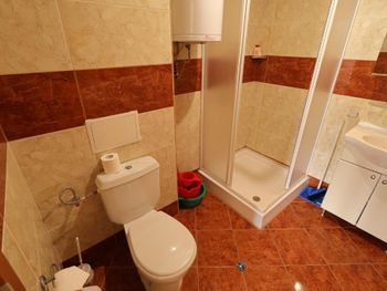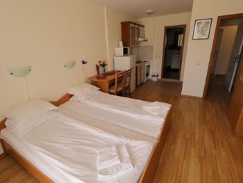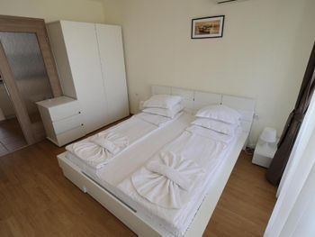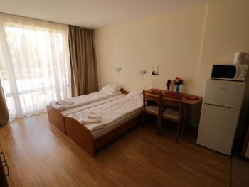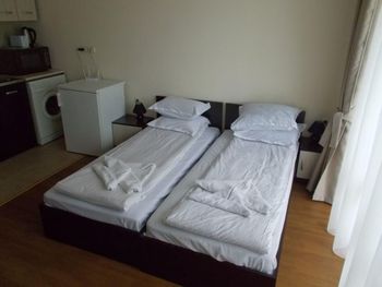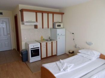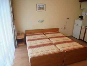Номер в который нас заселили был расположен удачно, однако все его недостатки всплыли позже...… Кровати были просто ужасными! Во всех кроватях продавлен матрас и мебель мягкая как-будто с блошиного рынка приобретена. После того как пожаловалась на ресепшен, что не могу спать, т.к. чувствую каждую пружину своим телом, нам принесли матрас который был чуть больше кровати. А вот раскладное кресло разложилось в ямку и пришлось эту ямку заделывать подушками. Очень маленький и старенький холодильник, который местами пожелтел. Сушилки для посуды нет, что очень не удобно. Сковородки и кастрюли самые дешевые и готовить в них сложно. Душевая засорена и вода поднималась по щиколотку. По нашей просьбе, персонал прочищал слив в душевой и стало чуточку лучше, но не надолго. Обслуживающий персонал приветливый, однако на уборке номеров работает много местных цыган.