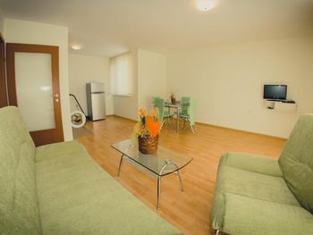The apartments are fully furnished and air-conditioned, offering views either to the pine forest or to the sea. Guests can make use of the equipped kitchenette. A living room with a sofa and a TV with more than 20 English and over 40 Russian channels is available. Free WiFi is provided.