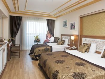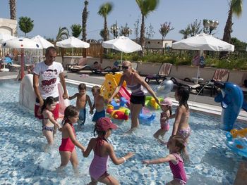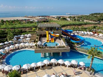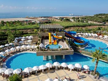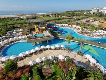 Брали номер с боковым видом на море,море было ооооочень далеко с боку,вид был на дорогу.Территория отеля очень маленькая.Еды было достаточно,но не всегда она была вкусной,часто пережареной и суховатой-это относится к рыбе,курице и индейке.Салаты часто клали большими порциями,которые не съешь. Кофе и чай в барах и ресторанах отвратительный. Кофе можно было пить только турецкий в кофейне.Некоторые бармены неквалифицированы-шомпанское бьет фонтаном из бокала и далеко не все умеют делать коктели. Вино низкого качества.Крепкий алкоголь не пробовала.Анимации практически не было.Только йога и один раз видела аквааэробику,боча ,волейбол и водное поло.