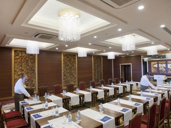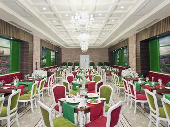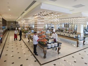 В главном ресторане Lalezar подают блюда по системе «шведский стол», а в 7 ресторанах с обслуживанием по меню — разнообразные блюда мексиканской и османской кухни. В отеле Crystal Palace также работает 6 баров, расположенных по всей территории.
