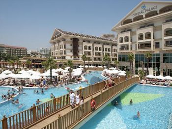 Насладитесь великолепным сервисом в Crystal Palace Luxury Resort & Spa - Ultimate All InclusiveОтель Crystal Palace расположен на территории площадью 22 000 кв.м. К услугам гостей собственный песчаный пляж протяженностью 190 метров с шезлонгами и зонтиками, 3 открытых и 1 крытый бассейн, а также полностью оборудованный оздоровительный и спа-центр. Во всех зонах действует Wi-Fi.