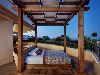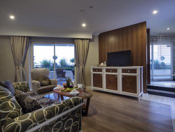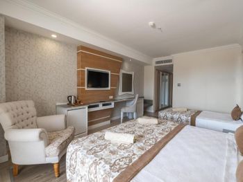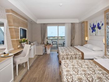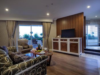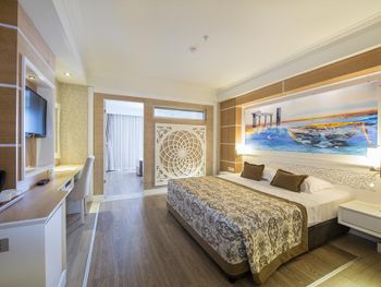Стильные номера курортного спа-отеля Crystal Luxury Sunset оформлены в теплых тонах. На полу постелен ламинат. В числе удобств балкон, кондиционер и телевизор с плоским экраном. За дополнительную плату осуществляется доставка еды и напитков в номер по меню дня.