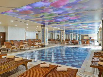 Отдыхали в сентябре-октябре 2021г. семьей с детьми 7, 9 лет. Остались в дичайшие восторге! По порядку: Заселение: встретил русскоговорящий администратор, заселили в прекрасный просторный тихий номер с торца отеля, так что балкон выходил не на трассу и не на бассейн. В номере все исправно, душевая удобная, на пол вода не выливалась. Расходников в номере было мало, но когда попросили у горничной, получили с избытком все что нужно, даже вихотки и расчески😁 Питание: вкусное, свежее, разнообразное. Большой ассортимент фруктов, разнообразие мяса, вкусная рыба. Дети брали суп, толчёнку, пасту, курицу… к любимому фастфуду даже не притрагивались, было много всего повкуснее)) Напитки средние, вино не вкусное, коктейли и мохито(такси бар работает всего 2часа) норм. Почти весь день у бассейна работает ресторан, мороженного аж 6-7 видов! Есть бар с сладостями, кофейня, где варят чудесный кофе по-турецки. Анимация: Алина, Арина, Ваня и конечно же Мино❤️ очень крутые ребята! День был расписан по часам! Особенно полюбилась зумба💃🏻, муж играл в водное поло. По вечерам детская дискотека, затем взрослое шоу(за некоторое не жалко было бы и заплатить), потом диджей или живая музыка 🎵 Персонал: вежливый и искренне приветливый! Всегда в хорошем настроении, шутят, поют серенады😍 Но в то же время себя в обиду не дают! Пару раз видела как ставили наглых туристов на место!👍 Особенно полюбилась тетушка, которая готовит Гёзлеме, лепешки у неё огонь 🔥, а если с ней подружиться, то на ужине всегда будешь получать самый тёплый, свежий хлеб☺️ Мы заметили что персонал работает ежедневно не меняясь. Удивительно как ребята остаются такими веселыми и доброжелательными в таком диком графике!
