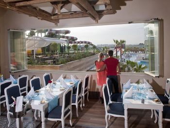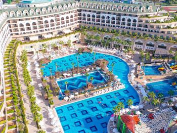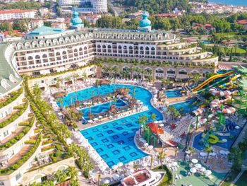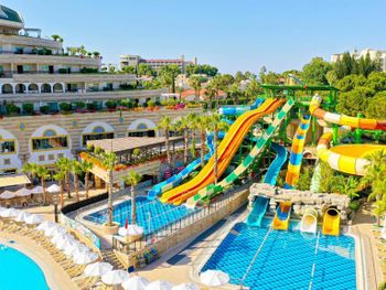 Отдыхали с 12 октября по 21 октября 2021 года: дочь, внук - 3,7 лет. Отелем остались очень довольны, жаль что из за пандемии закрыли красивую дорожку, среди красивой зеленой территории, где растут гранаты, читала в ранних отзывах. Теперь можно пройти по дороге между двух отелей или на пляж можно доехать на микроавтобусе. Мы всегда ходили пешком, ребёнку тоже нравилось ходить пешком, отличная прогулка после вкусного завтрака. Питание отличное, так и не смогли все попробовать. Приехали в отель в обеденное время и Ирина, рускоговорящая на рецепшен, сразу же нас разместила в номер, очень культурная и вежливая женщина.Номер большой, светлый, с видом на бассейны , аквапарк и частично видно море. Уборка ежедневно, полотенца меняли каждый день. Море чудесное, теплое, в некоторых местах есть камни, но их видно надо просто найти хороший вход. Фанатам Аквапарка в отеле очень понравится, это отдельная песня, столько горок, отдыхающие в восторге. Анимация отличная, какие чудесные номера, красивые костюмы, профессиональные артисты. Ооооочень красивые бассейны, огромные, но опять же мы не фанаты такого купания, поэтому не пользовались, да и вода в них холодная в октябре, даже где горки для малышей. Внук прокатился пару раз и больше не захотел. В основном ресторане очень много столов, но иногда, чуть запоздаешь, приходиться рассаживаться в конце зала, но это не критично. Около моря большая набережная, хороший и длинный променад, до самого старого города и колонаты Аполлона. Когда летели обратно в Москву уже хотелось вернутся назад в отель. Спасибо всему персоналу отеля, что держите марку. Однозначно, рекомендуем этот замечательный отель!