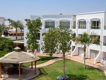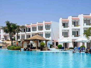 Уютный отель с зеленой территорией Ivy Cyrene Sharm для гостей 13+, через неактивную дорогу от собственного пляжа. Гости отеля могут пользоваться территорией отеля Ivy Cyrene Island, кроме ресторанов и баров. Отель расположен в районе Montazah Ras Nasrani Bay напротив острова Tiran.
