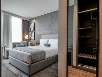 Очень удобно расположен: метро прямо в здании отеля, даже на улицу не нужно выходить. Стильные комфортные номера, есть все необходимое. Вежливый приятный персонал.