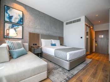Ковёр был мокрым и ходить по комнате без обуви было нельзя, тапок никто не предоставил. Никаких туалетных принадлежностей , кроме мыла не было. Подушки ужасно жёсткие , спать неудобно. Вид из окна был на строительную свалку. Фена в номере не оказалось. Пришлось идти за ним на рецепшн. Около 12 ночи к нам в номер постучал служащий и попросил отдать фен. Я объяснила, что отдам его завтра : утром я буду мыть голову. Легла опять спать ...через пять минут позвонили с рецепшн и стали снова выяснять где их фен?..Сон как рукой сняло. Мы хотели переночевать всего одну ночь... Но выспаться не удалось. ОКНО В НОМЕРЕ НЕ ОТКРЫВАЛОСЬ! - там это вообще не предусмотрено - только кондиционер. Воздух был тяжёлым, встали разбитые , с головной болью. Не рекомендую отель. На три звезды никак не тянет .Обслуживание , как в совке.