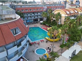 Мы отдыхали несколько дней с ребенком 5 лет, понравилось, что есть детский бассейн на территории и есть аквапарк, детская площадка с горками и лазилками. Еда в целом норм, особенно понравился ланч-бар, который работал с 12 до и 16 и там делали шаурму, пиццу, луковые колечки, картошку фри. Мы же возим детей за границу, чтобы они могли попробовать картошку фри во всех странах, правда? xD Один нюанс, мы попали на полный отель, поэтому некоторая еда очень быстро заканчивалась)) а еда с гриля имела очередь, но это скорее говорит о качестве отеля (его полная загрузка). В основном отдыхающие были из СНГ и Турции, персонал дружелюбный, люди тоже.